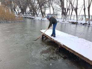 Sultan Sazlığı Ziyaretçi Bilgilendirme Merkezi'nde donan gölde buz kırma işlemini gerçekleştiren Oğuz Deringöl, "Bölgemizde hava sıcaklıkları eksi 10 dereceye kadar düşünce göl buz tutmuş. Burada evcil ve yaban hayvanları çok bulunur ve gölün buz tutmasıyla onlar da sıkıntı çekiyor. Buzları yetişebildiğimiz yere kadar kırıyoruz. Bu sayede evcil ve yaban hayvanlarının su içmelerini sağlıyoruz" diye konuştu.