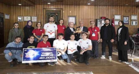 Haberal25 –Yapmış oldukları teknolojik çalışmalar ve geliştirdikleri projelerle Eylül ayında Samsun Çarşamba Havalimanında gerçekleştirilen TEKNOFEST 2022'ye damga vuran Atatürk Üniversitesi öğrencileri, Prof. Dr. Ömer Çomaklı'yı makamında ziyaret etti.