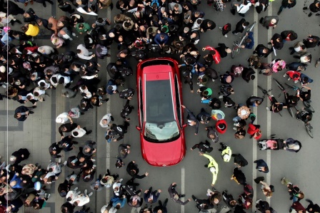 Haberal25-Sivas’ta ilk defa vatandaşlarla buluşturulan Anadolu kırmızısı Togg’u gören yüzlerce vatandaş etrafını sardı.