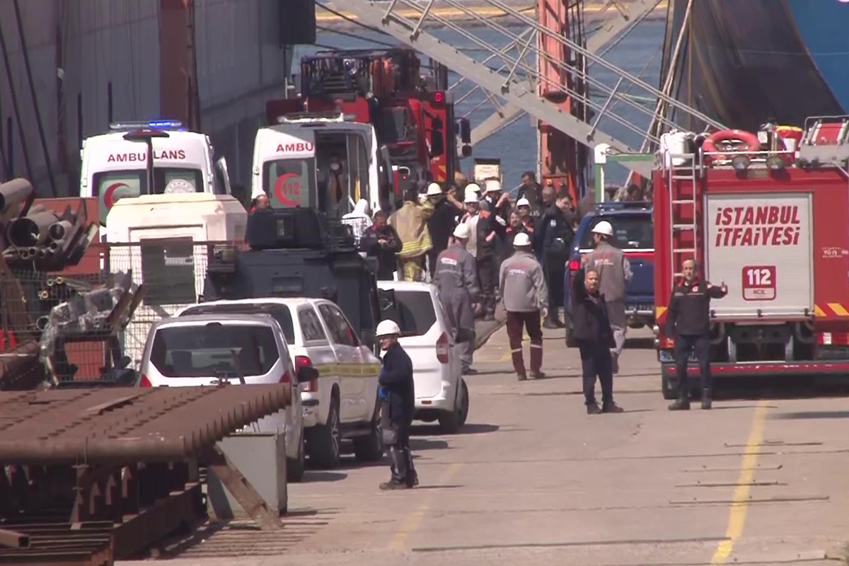 Tuzla’da bir tersanede bulunan gemide bakım onarım çalışması sırasında karbondioksit sızıntısı oluştu. Karbondioksit sızıntısı nedeniyle gaz zehirlenmesine maruz kalarak yaralanan 4 işçi hastaneye kaldırıldı. Olayın yaşandığı gemi havadan görüntülendi.