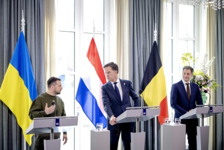 Devlet Başkanı olarak Hollanda'ya ilk resmi ziyaretini gerçekleştiren Vladimir Zelenskiy, Vladimir Zelenskiy ve Belçika Başbakanı Alexander De Croo ile ortak basın toplantısı düzenledi. Toplantıda konuşan Rutte, Ukrayna'nın istediği F-16 tipi savaş uçakları konusunda yapılan müzakerelerde ilerleme kaydedildiğini açıklayarak, “F-16'larda tabu yok. Ortaklarımız Belçika, İngiltere, Danimarka ve diğerleri ile bu müzakereleri sonuca götürmek için yakın bir şekilde çalışıyoruz. Henüz o noktada değiliz" dedi.