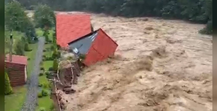 Haberal25-Rize’nin Çamlıhemşin ilçesinde etkili olan sağanak yağışın ardından dereler taştı. İlçede dere kenarında bulunan iki bungalov, şiddetli sel sularına dayanamayarak yıkıldı.