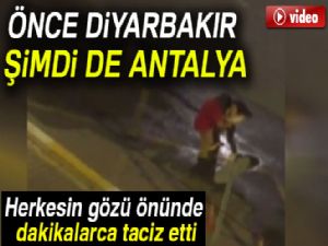 Edinilen bilgiye göre, yaklaşık 1 ay önce, Antalya Cumhuriyet Caddesi'nde telefonla konuşan bir kadına yönelik taciz anı görüntülere yansıdı. Görüntülerde, elindeki alkol şişesiyle cadde yürüyen erkek bir şahıs kadına sarılarak taciz etmeye başlıyor. Tacize uğrayan kadın ise telefonda konuştuğu kişiden yardım istiyor. Genç kadın uzun uğraşın ardından tacizcinin elinden kurtulmayı başarıyor.