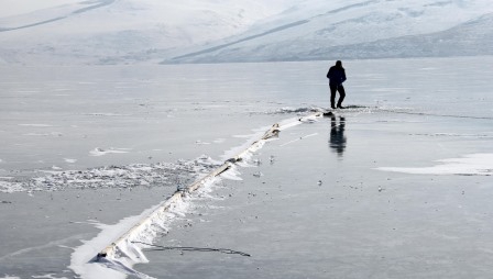 Haberal25-Ardahan 'ın Çıldır ilçesinin Akçakale köyündeki balıkçılar, dondurucu soğuk nedeniyle yüzeyi tamamen buzla kaplanan Çıldır Gölü'ne yeni yılın ilk günleri Eskimo usulü balık avlamak için ağlarını suya bıraktı. Aradan geçen yaklaşık iki haftalık bekleyişin ardından ağları 'ya nasip' diyerek buzun altından toplamaya başlayan balıkçılar, karın az yağmasının balığı da etkilediğini söyledi. Yüzeyi buz tutan gölün üzerinde kar olmaması nedeniyle balıkların ağlara gelmediğini belirten Yakup Topkaya (30) "Kıyıdan yaklaşık 3 kilometre uzaklıkta açtığımız deliklerden ağları buzun altına gönderdik. Şimdi toplama zamanı ama geçen yıllara nazaran balık az. Çünkü buzun üzeri açık olduğu için balık ağlara gelmiyor" dedi.